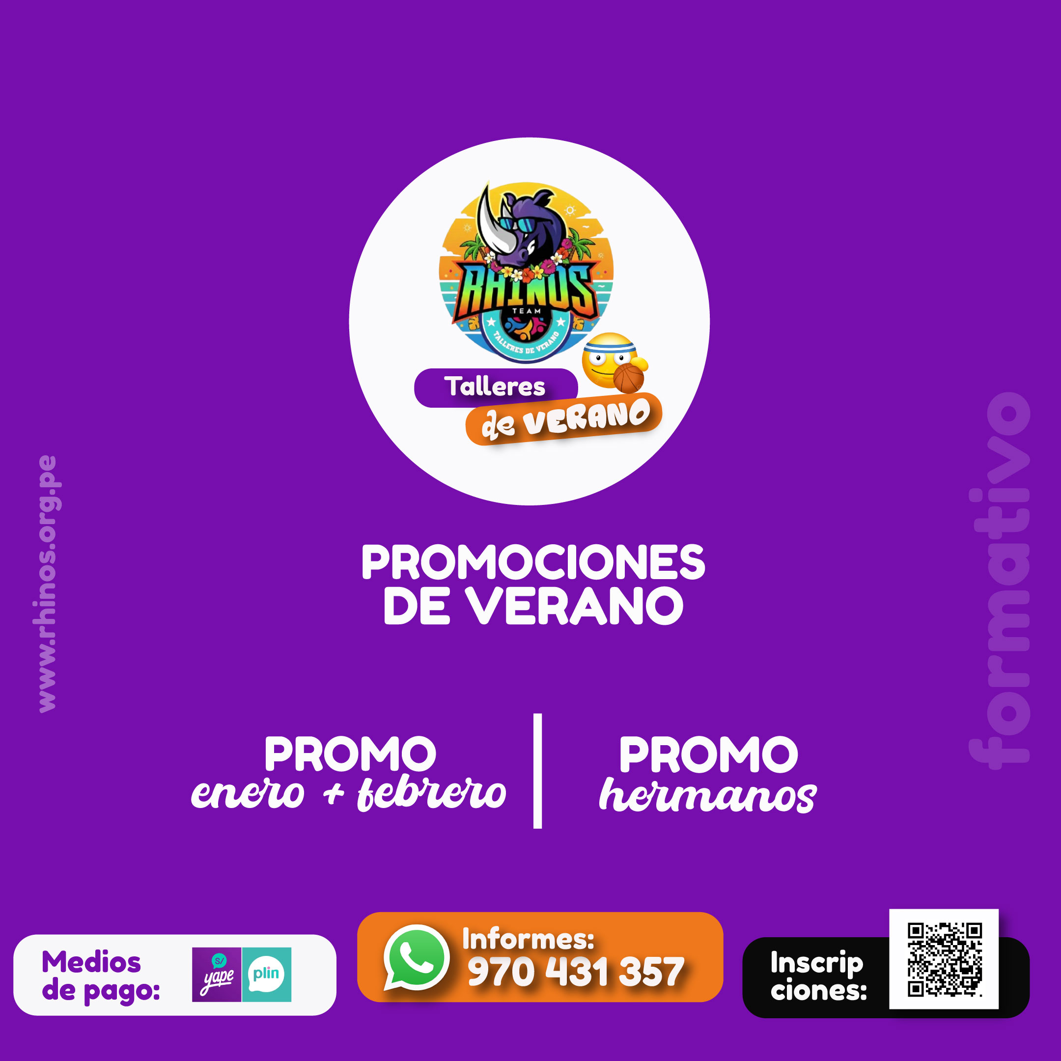 PROMOCIONES VERANO 2026 PROMO VERANO ENERO + FEBRERO 15% de descuento PROMO HERMANOS – 10% de descuento El porcentaje de descuento de la promoción verano se aplica por a suma del costo de taller enero + febrero. El porcentaje de descuento de la promoción hermanos se aplica por cada uno en el costos del taller.